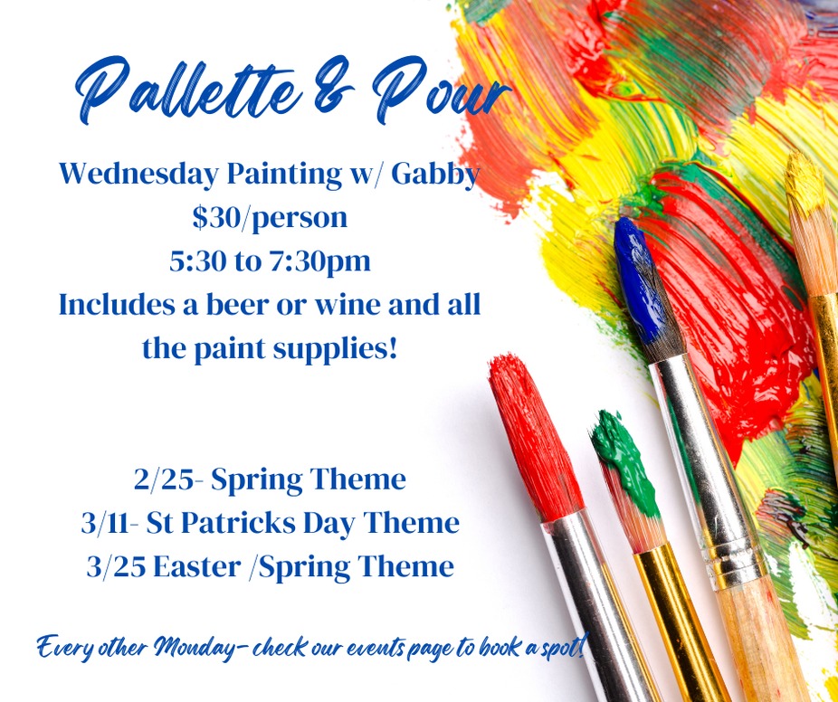 Every other Wednesday. $30 includes a glass of wine and supplies.