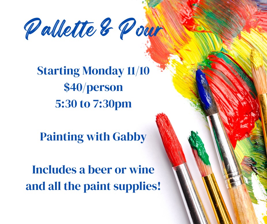 Every other Wednesday. $30 includes a glass of wine and supplies. Book link below to reserve your spot for $1 which will be applied to the event the day of.