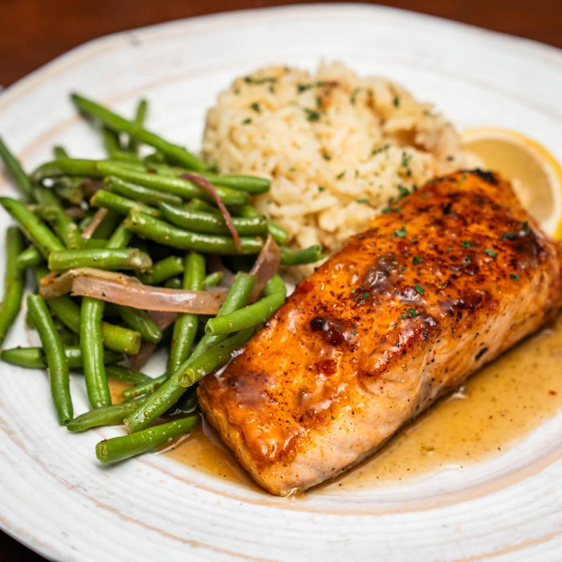 Served with rice pilaf and the chef's vegetables.