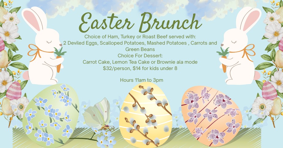 Come celebrate Easter with us! Easter Brunch from 11am to 3pm. Reservations suggested!